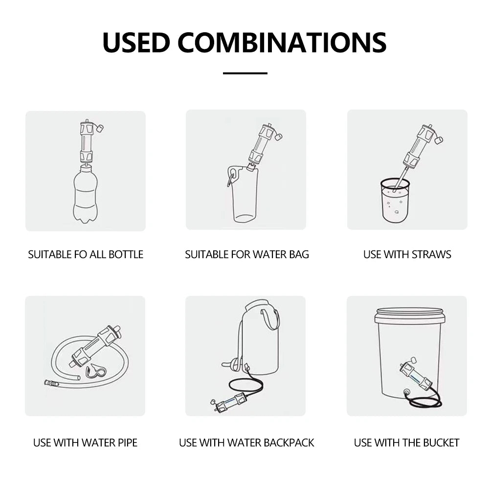 Nutze ihn direkt, mit Wasserflasche, -beutel, -eimer, Trinkrucksack oder Schlauch.